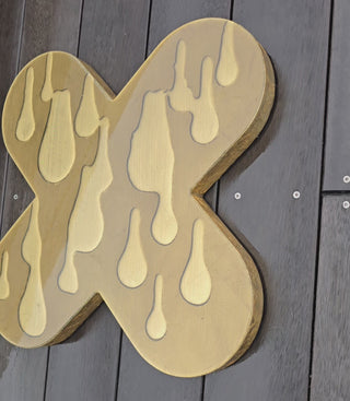 creates beautiful lustrous large scale abstract art with liquid resin, gold leaf and inks.